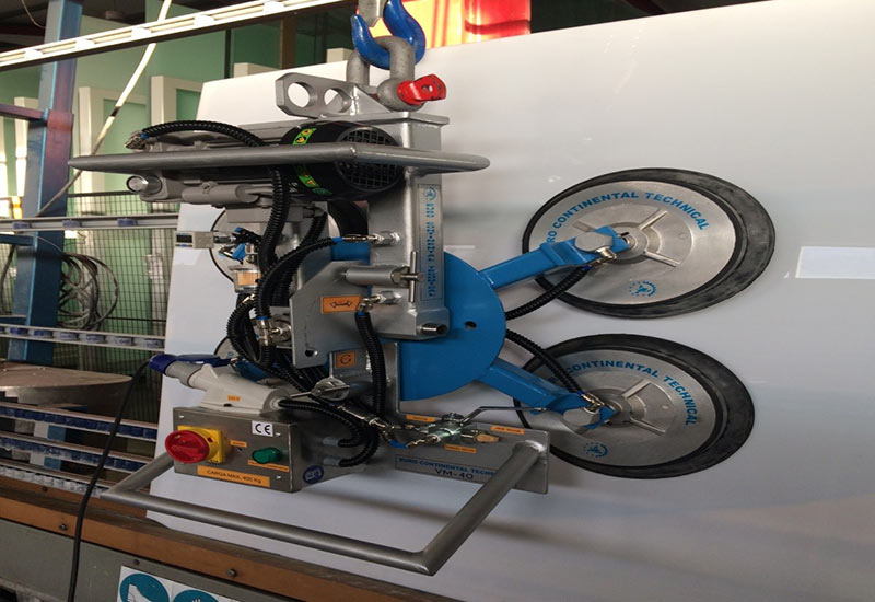 A máquina VM – 40 transporte de vidro, com um peso máximo de 400 kg.Com as dimensões do vidro de máximo de 2500 mm x 2000 mm e mínimo de 800 mm x 600 mm.